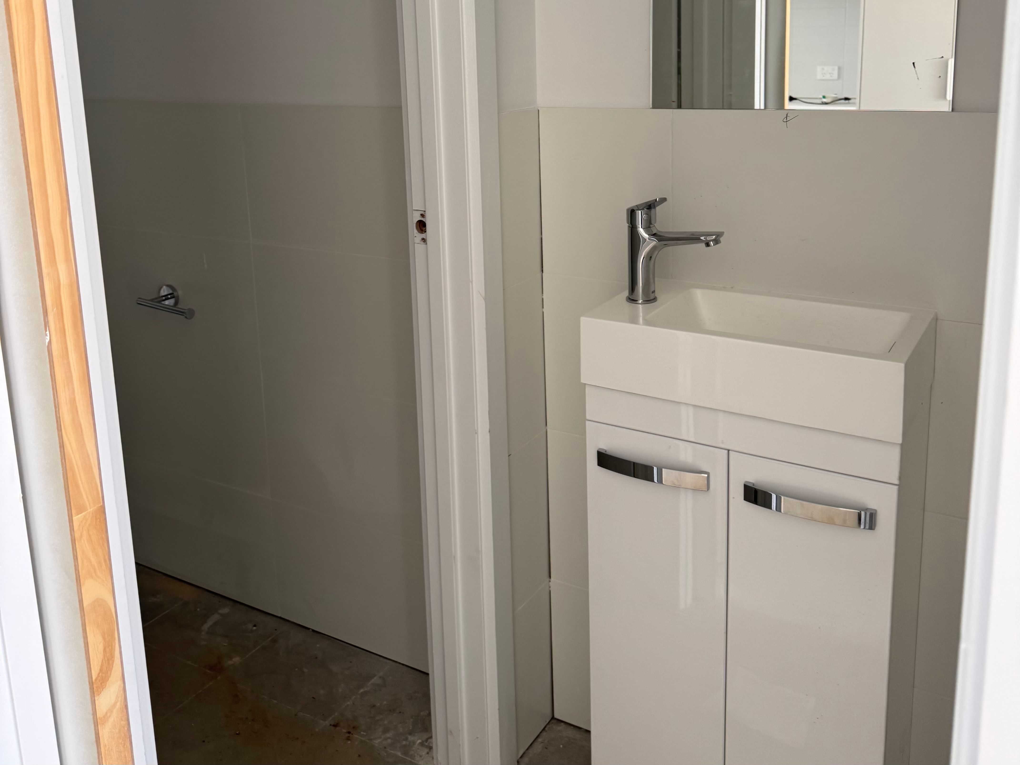 - 2nd fix plumbing fully completed (shower screens, toilets, basins, mirrors etc installed)